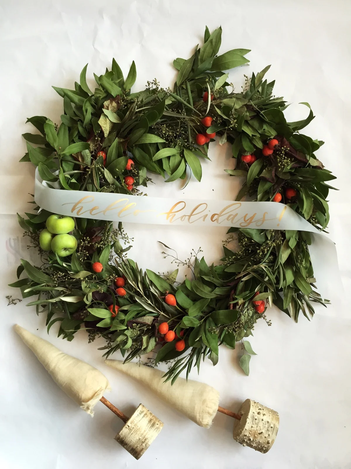 I'm super excited to announce that I've just added several upcoming holiday wreath and brush calligraphy workshops to my WORKSHOPS calendar page. I am teaming up with Julia of Luminous Lines Creative to teach you how to create a beautiful festive fresh holiday wreath that will have all your neighbors and friends thinking you turned into Martha Stewart. The wreaths will be made using locally sourced holiday greens and berries. The wreaths will stay fresh for about two weeks and they will dry out beautifully so you can keep it up through the new year.